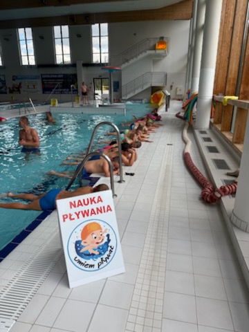 30 osobowa grupa uczniów naszej szkoły z klas 2-3 wraz z 15 osobową grupą z klasy III ze Szkoły Podstawowej z Chojna wzięła udział w projekcie "ABC pływania". Uczniowie podczas 20 godzin na Milickiej Fali oswajali się z wodą, uczyli się zachowań w środowisku wodnym, nurkowali oraz poznawali style pływackie. Dzieci z wielkim zaangażowaniem wykonywały ćwiczenia oraz stosowały się do instruktażu. Atmosfera podczas zajęć była przyjazna i motywująca , a ćwiczenia dostosowane do poziomu uczestników. Do egzaminu na kartę pływacką przystąpiło dziewięcioro uczniów i otrzymali oni kartę pływacką.